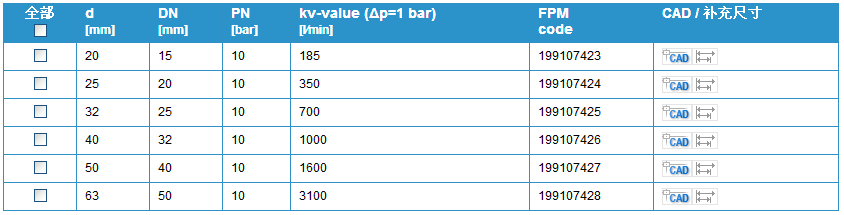 • 閥門個別配置(參見表格)