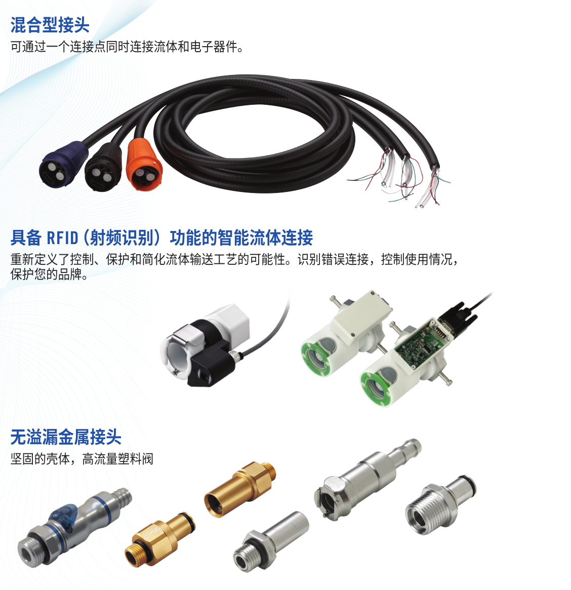 方案 讓流體和空氣連接更方便使用,更可靠,提高產(chǎn)品的模塊化和可維護(hù)性,提供更清潔,更快速,更安全,更智能的連接方式,使您的產(chǎn)品增值。如果您無法從我們數(shù)以千計的標(biāo)準(zhǔn)產(chǎn)品中找到完美的解決方案,或者您希望擺脫項目的連接器部分,以便專注于核心技術(shù),CPC Engineered Solutions可以提供幫助。